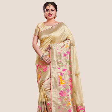 Cream Georgette Embroidered Saree
