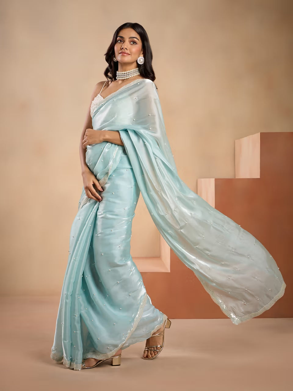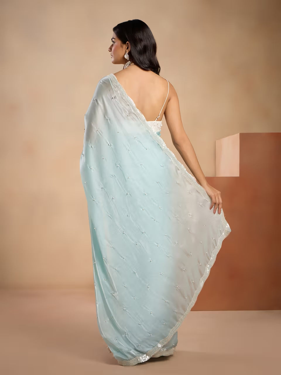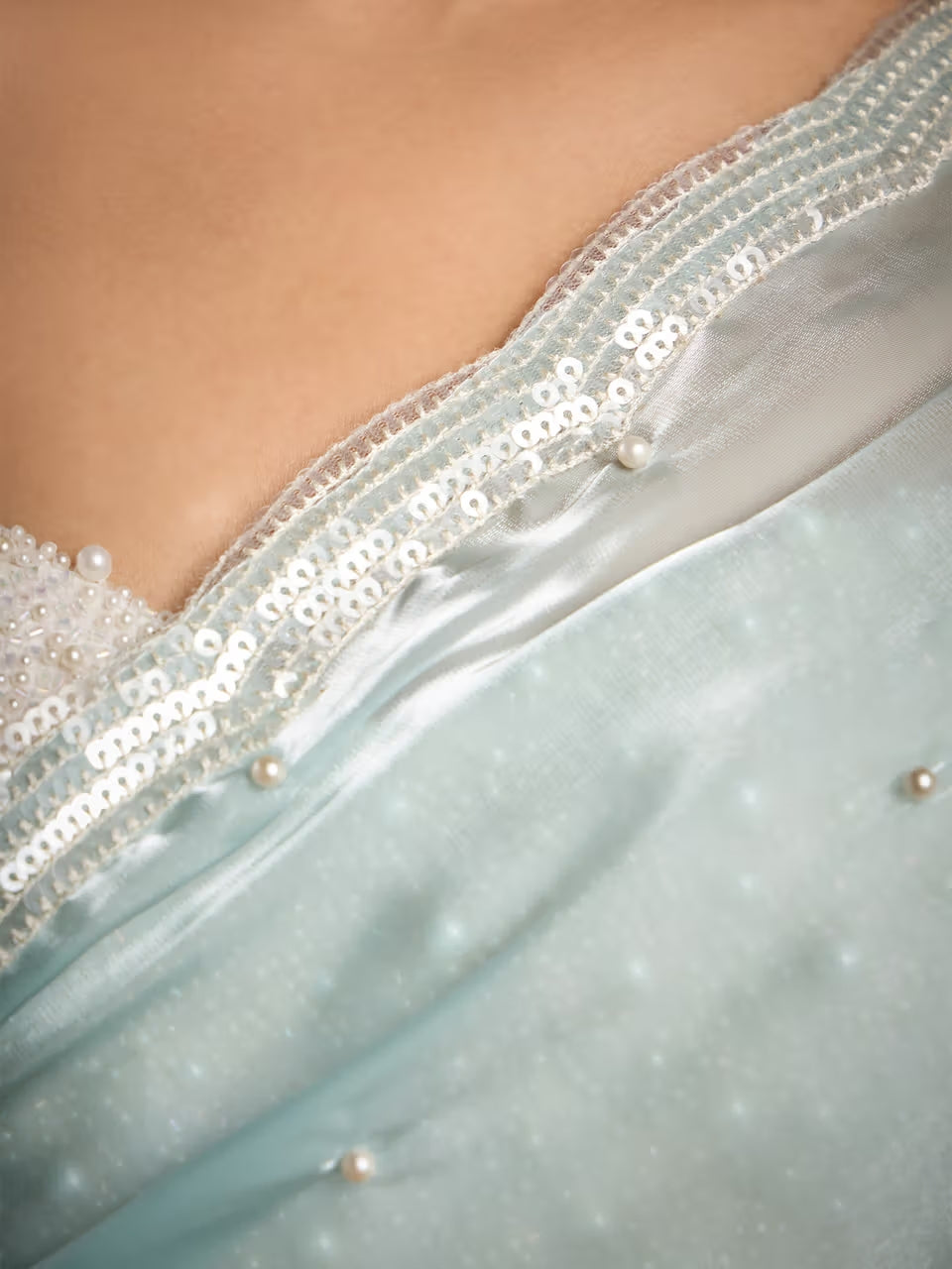 Exquisite Embellishments: Pristine white pearls add a touch of timeless beauty, complementing the glittering sequins.