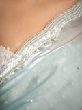 - This saree comes pre-stitched and does not include a blouse. The blouse pictured is for styling purposes only and sold separately.