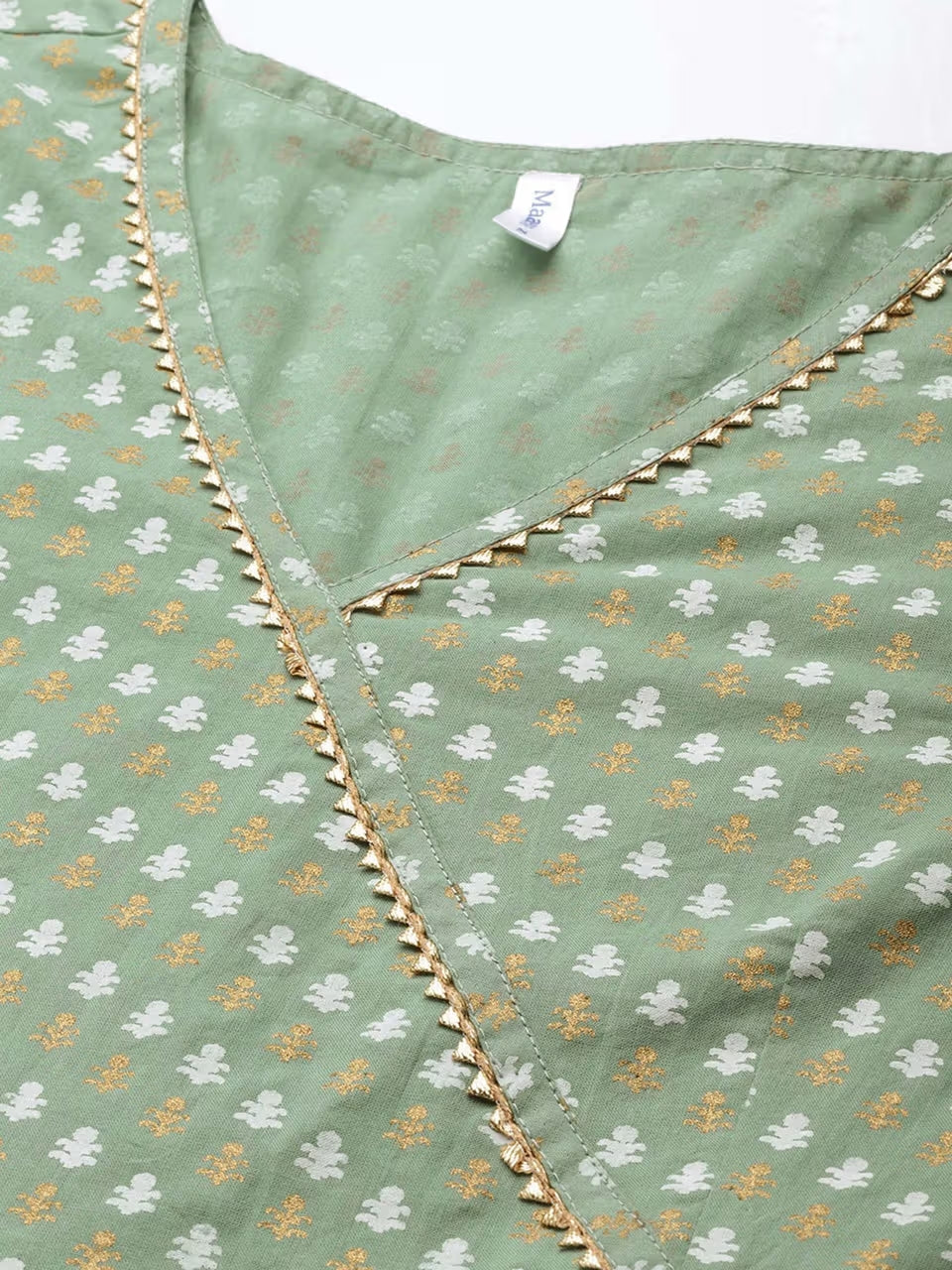 Green Ethnic Motifs Print Cotton A-Line Kurti with Dupatta (Set of 2)